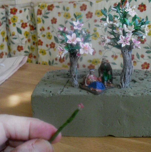 Pues nada Isabel , si tienes que practicar , haz muuuuuchas hojitas y flores y ya me pasaré yo por tu casa y verás que bien quedan en mi belén....ji,ji,ji.