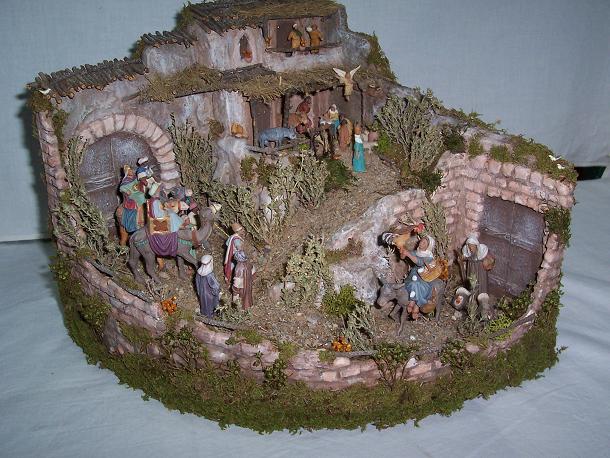 .....Para seguir practicando,voy adjuntar una foto de un Belen que hice tipo rinconera con Fiuras de Carro de los Hnos. Castells de Barcelona , en tamaño 5 y 3 cms.