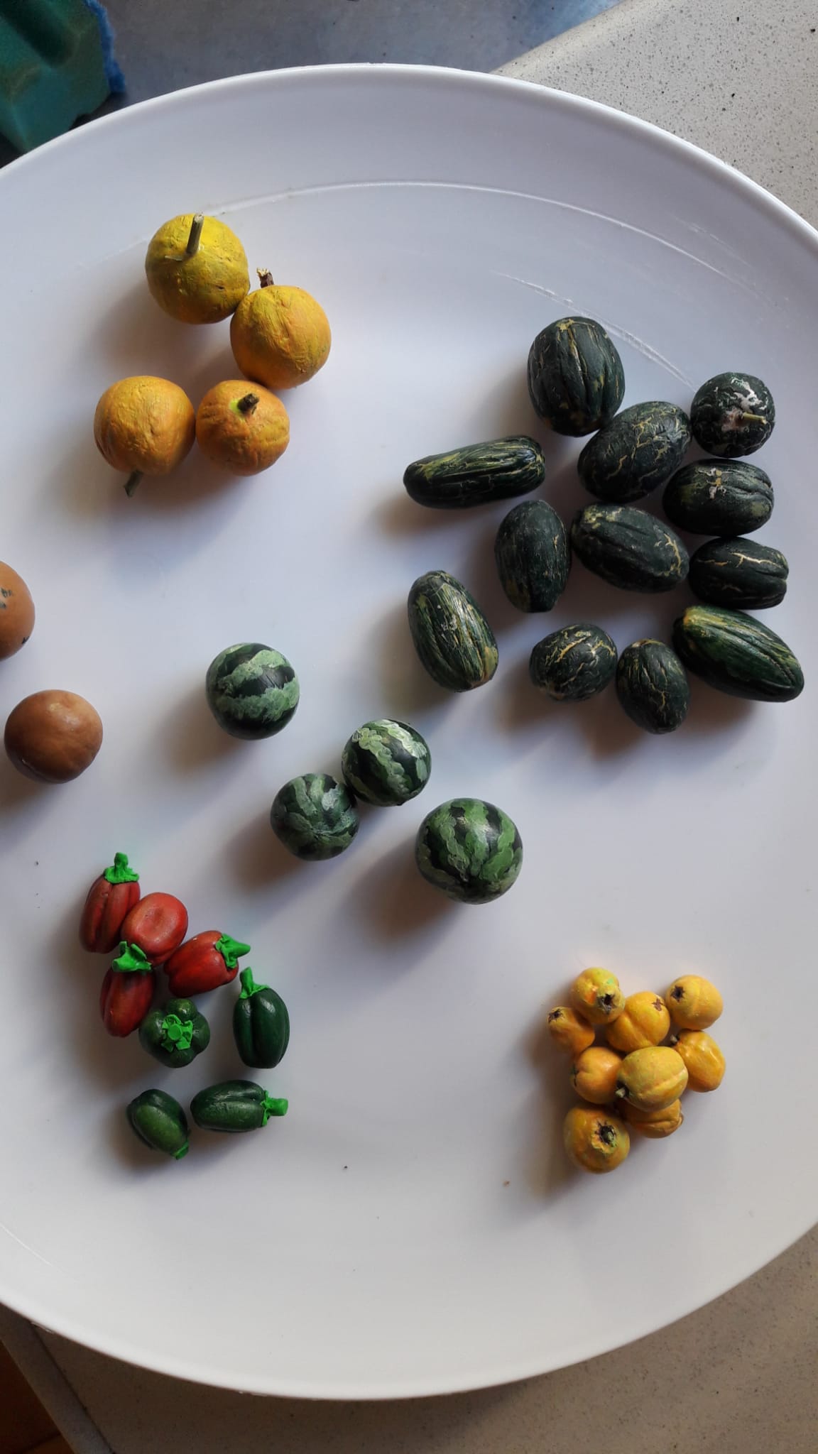 Me he entretenido en renovar la huerta y el puesto de frutas. Esta hecho con una pasta que seca al aire y pesa muy poco, de los chinos. Se llama pasta modelable foan clay. A ver si soy capaz de mandar las fotos