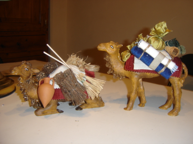 Si te fijas en las foto, todas las telas que salen sobre un camello son de las muestras que comentaba. Te he he puesto el otro camello para que veas que con cualquier tonteria puede darle vida a una simple figura, he hecho dos escobas con palos de pincho y rafia anudada con hilo de coser, con cuerda he hecho atillos de cuerda. Los atillos de leña los compré en un todo a 100, valien 50 céntimos un blister con 5, así que no valia la pena hacerlos. El otro tipo de atillo como de paja, también es rafia. La rafia era el lazo de un ramo de flores. La pieza de cerámica la compré en Mibako, porque la verdad es que soy muy mala moldeando.