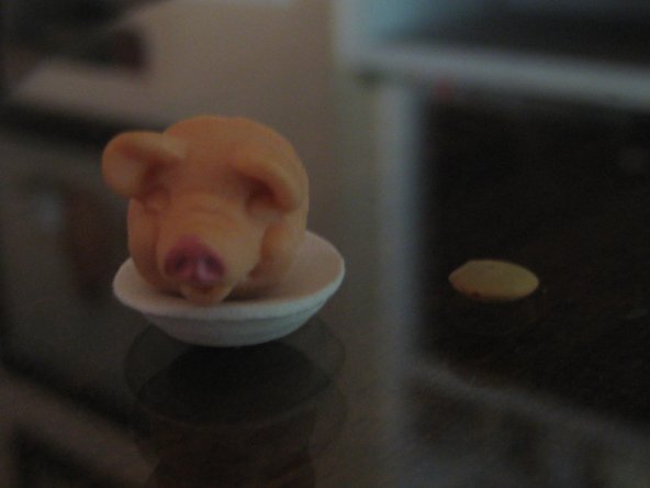 Pilar, por fim lo vi. Me habia gustado, pero no sabia que el cerdo astaba asado. La testa está muy bien conseguida. Tal vez si le pintas con un poquito de vários tonalidades de marron parece más tostadito.