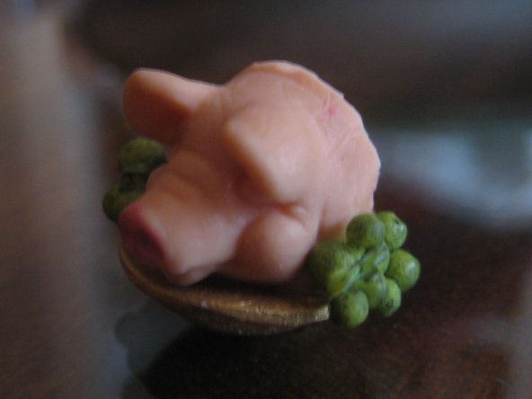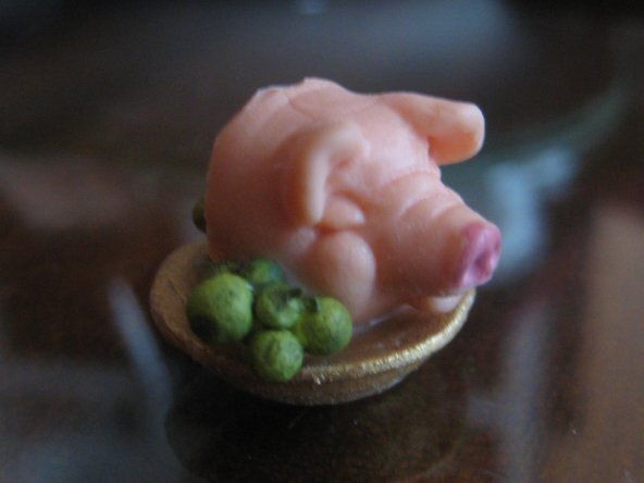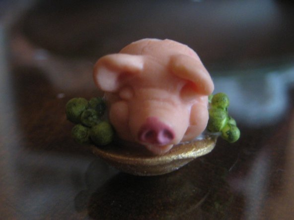 Estas miniaturas son una maravilla Felicitaciones, al cochinito le falta la manzanita en la boca, rodearlo con una buena ensalada. Mmmmmmm!!! ya me lo estoy saboreando...Lastima que es para Herodes jajaja
