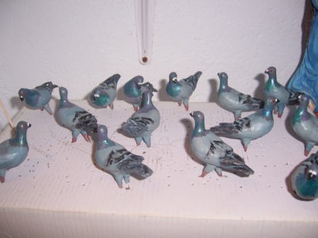 las palomas y las ovejas se venden, por encargo, son para figuras de 35 las palomas y para 25-30 las ovejas . estan realizadas en barro cocido y pintado. piezas originales
