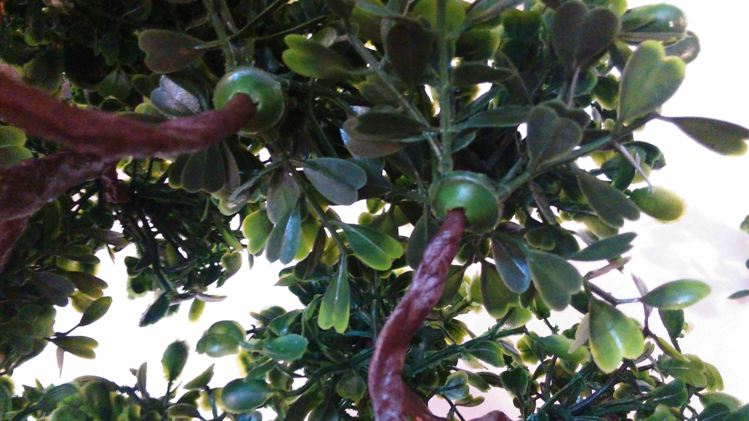 Te mando dos fotos, una con el manojo de hojas que obtienes al deshacer la bola y la otra donde se puede ver la parte interior del árbol.