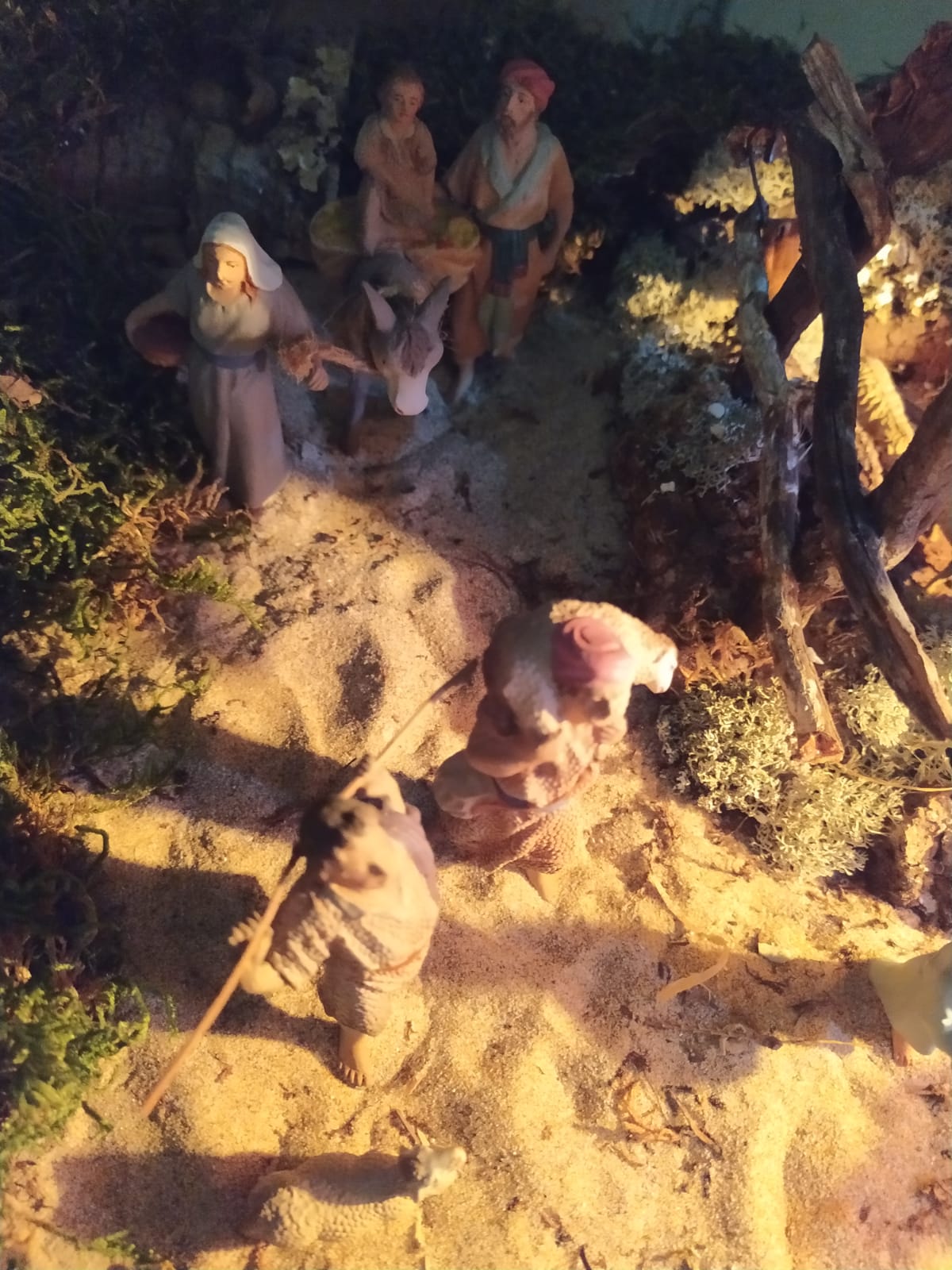 El primero con las figuras de Castells y Daniel, me parece un espacio donde prima una composición clásica, popular, de siempre, una apuesta segura: el musgo, el corcho, la calidez de la naturaleza que enmarca el espacio dando protagonismo a las figuras, a la narración quieta del paso de las escenas que se paran para contarnos con dulzura, suavidad, calidez... un movimiento contenido en la quietud del barro que les da vida.