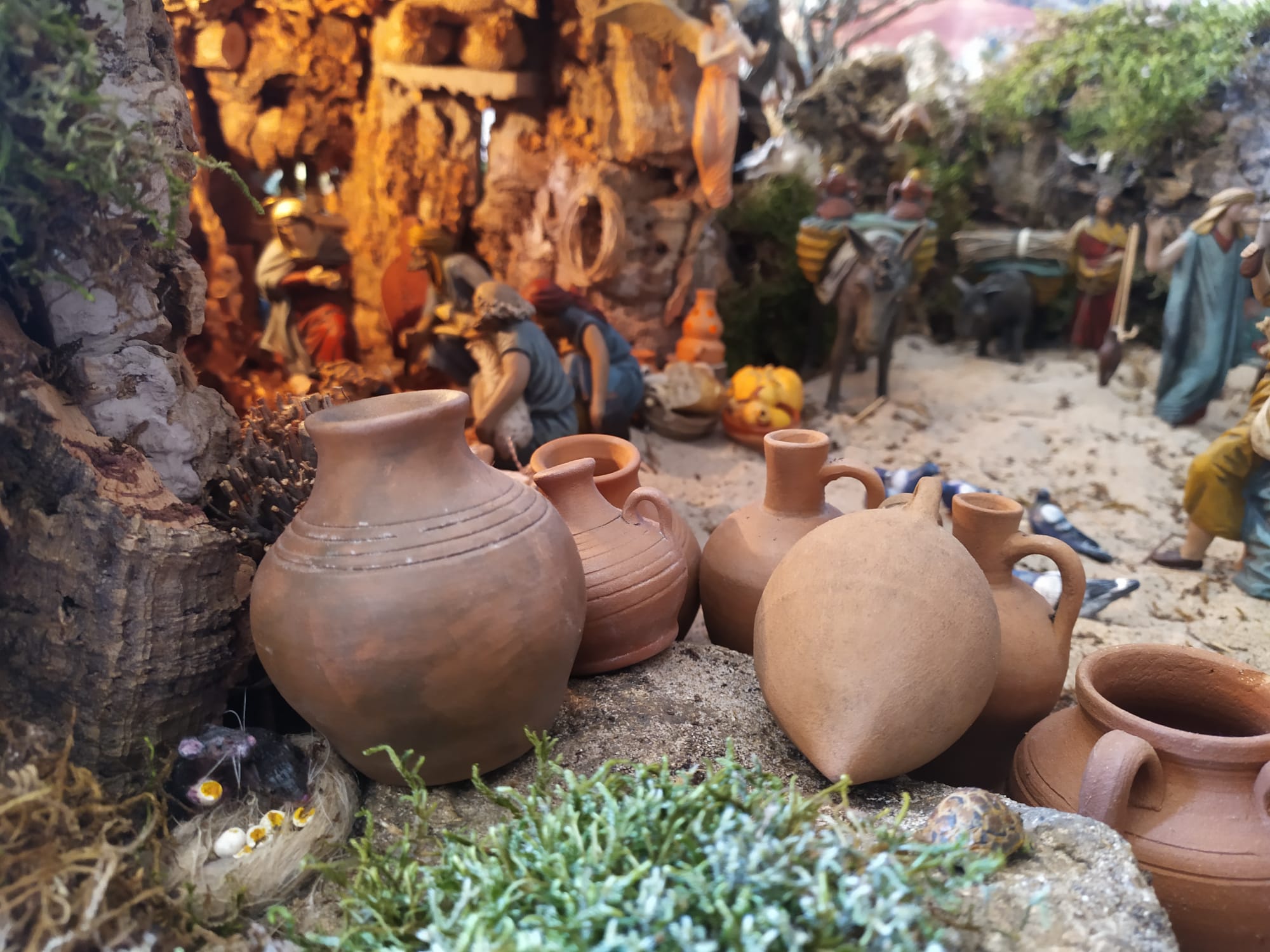 El primero con las figuras de Castells y Daniel, me parece un espacio donde prima una composición clásica, popular, de siempre, una apuesta segura: el musgo, el corcho, la calidez de la naturaleza que enmarca el espacio dando protagonismo a las figuras, a la narración quieta del paso de las escenas que se paran para contarnos con dulzura, suavidad, calidez... un movimiento contenido en la quietud del barro que les da vida.