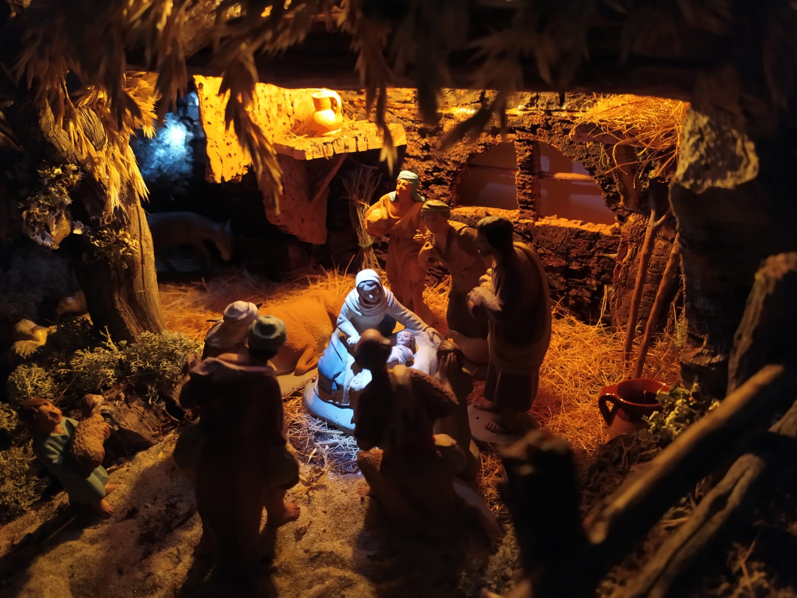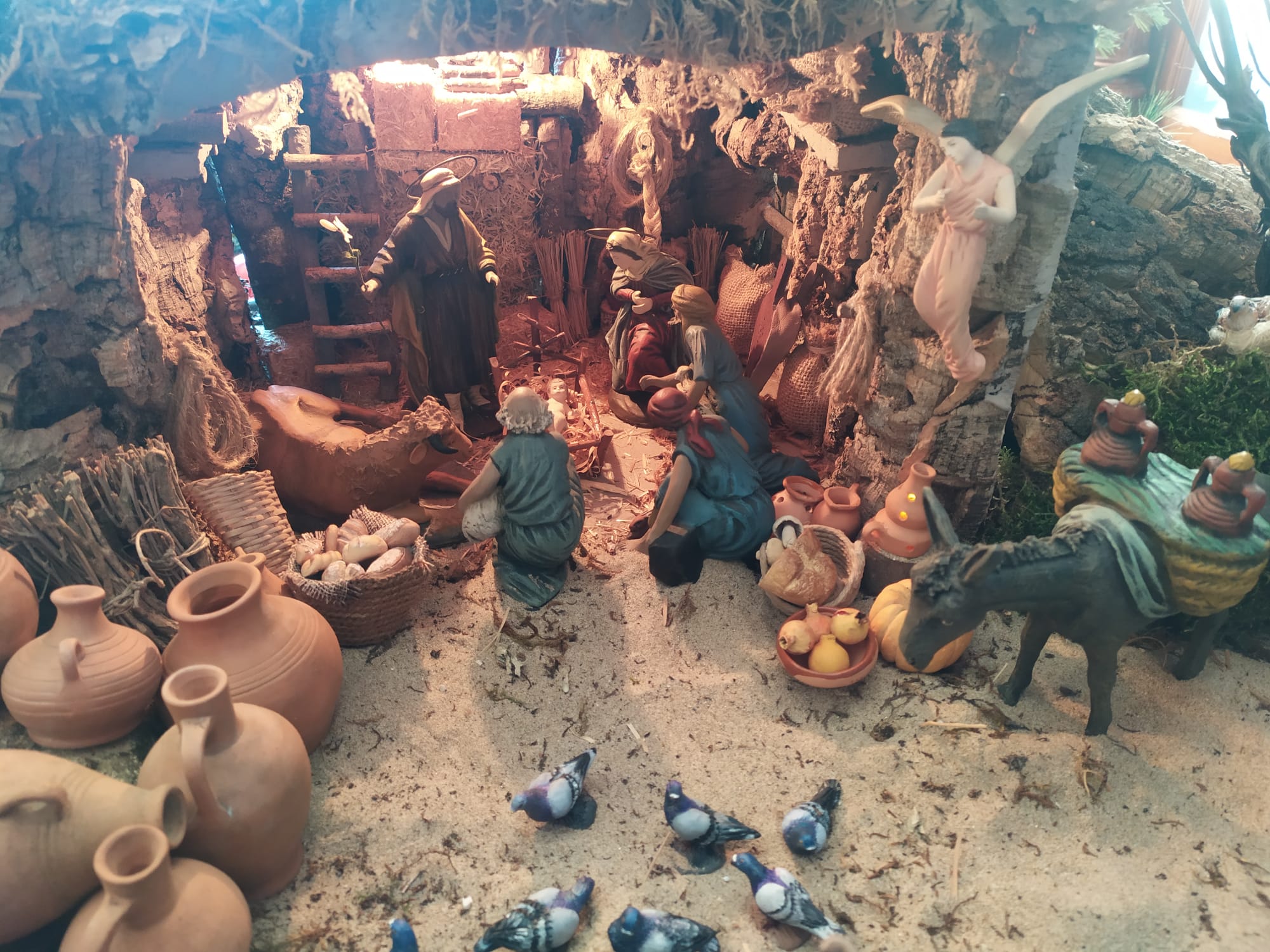 El primero con las figuras de Castells y Daniel, me parece un espacio donde prima una composición clásica, popular, de siempre, una apuesta segura: el musgo, el corcho, la calidez de la naturaleza que enmarca el espacio dando protagonismo a las figuras, a la narración quieta del paso de las escenas que se paran para contarnos con dulzura, suavidad, calidez... un movimiento contenido en la quietud del barro que les da vida.