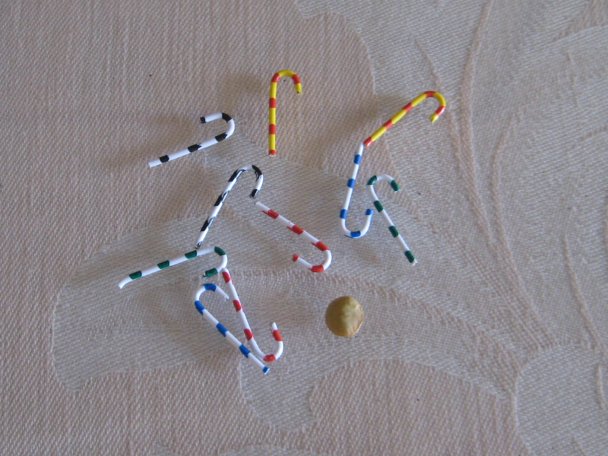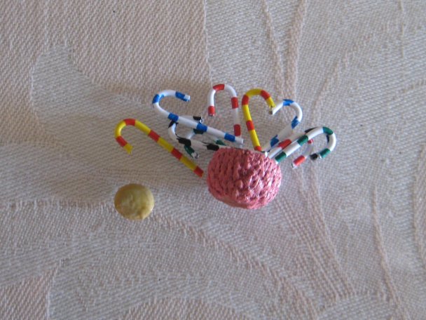 Joaquina, las piruletas son bolas de abalorios con un alfiler pegado por dentro, el algodon rosa, es ese de maquillaje que venden los chinos hay mas colores, las gomitas son mixtura de agaporni, y el cartuchito del lateral pues de estraza, copia, copia, y cuelga algo que yo lo vea,sabes que me debes una, el dia que me digas que has colgado fotos......uffff.