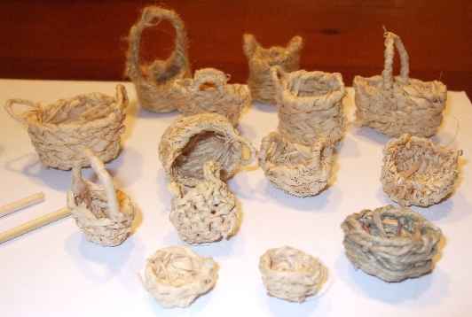 Estos son los primeros que realizo, son para figuras de 12 a 8 cm., estan realizados con rafia natural trenzada, con cuerda. Las escobas son con palillos de brocheta y rafia natural Al menos serviran para llenar huecos. ¿Qué os parecen?