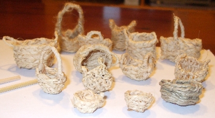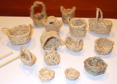 Estos son los primeros que realizo, son para figuras de 12 a 8 cm., estan realizados con rafia natural trenzada, con cuerda. Las escobas son con palillos de brocheta y rafia natural Al menos serviran para llenar huecos. ¿Qué os parecen?