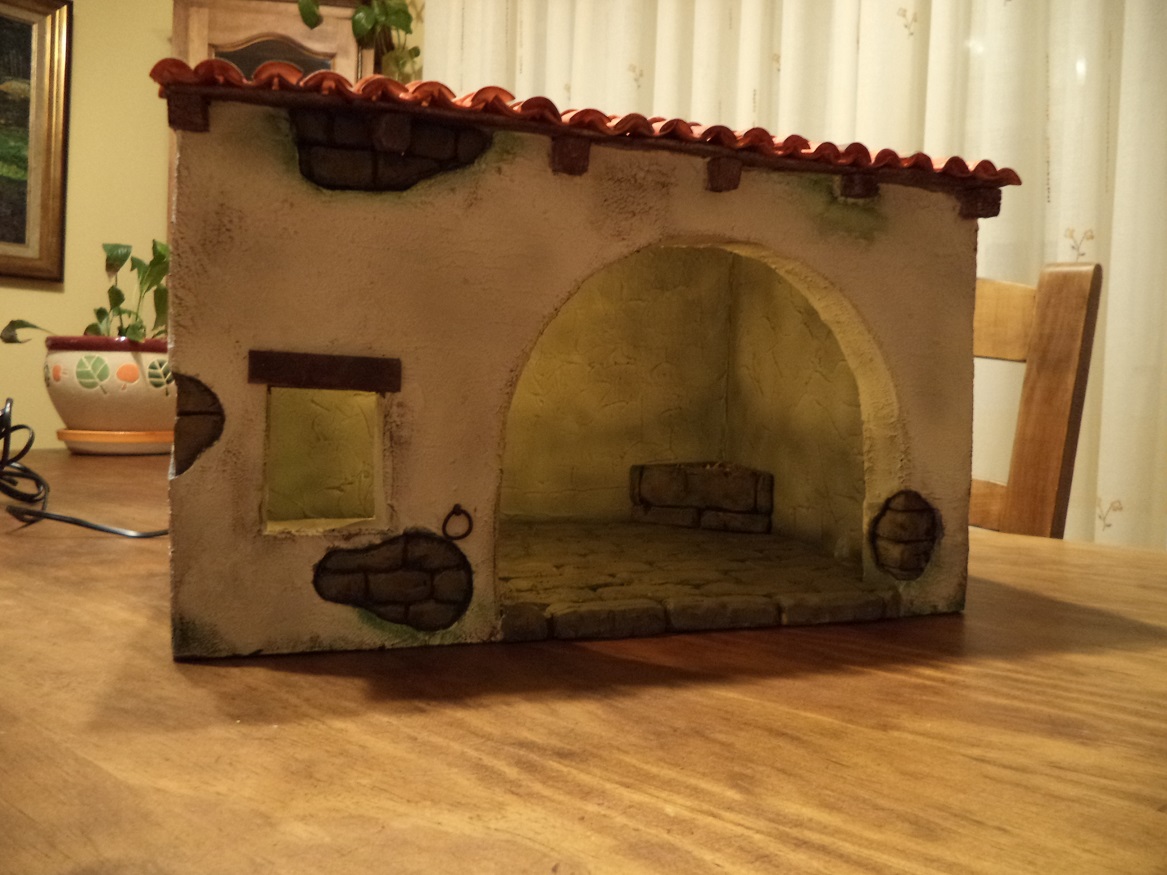 Muy bonito. Enhorabuena. Si quieres un consejillo solo te diré (y eso va según gustos), que los desconchones de la casa, antes de pintarlos y escayolarlos, cuando está el corcho aún blanco, yo le suelo dar alrededor de los ladrillos con un cepillo finito de alambre, me rasga el corcho de alrededor y se queda para mi gusto más natural. A la hora de escayolar, le doy unas pinceladas con escayola muy aguada y una vez seco pinto. Pero te vuelvo a repetir que se te ha quedado estupendo.