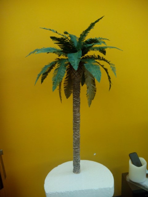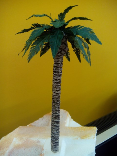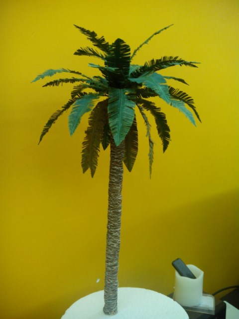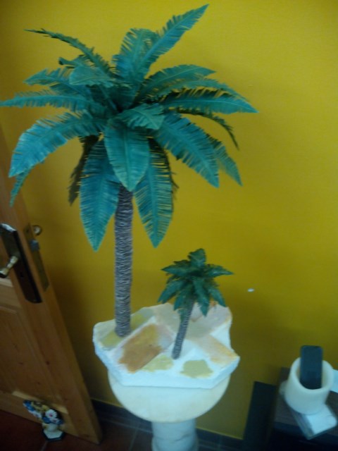 Palmeras de 60 cm. y 25 cm. [640x480].jpg (42KB - 215 descargas)Muybien Juan.- Dos cositas, yo cortaría las hojas un poco mas oblicuas a las puntas y la otra le daria un toque en ocre a pincel seco a casi todas las hojas, a unas mas y otras menos.Los trocos fenomenales. Le has metido alambre por medio a los troncos para que no se te rompan y ademas puedas doblarlos un poco para que no esten tan rectos. Eres un fenomeno.