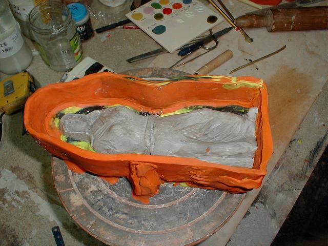 87.- Una mitad del cuerpo preparado para sacarle el molde.-