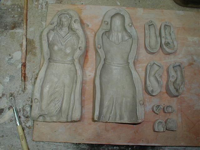 93.- Los diferentes moldes de la figura realizados y vacíos, del cuerpo, brazos y manos.-