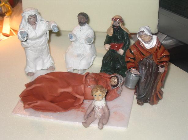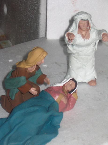 figuras transfor pendiente cara.JPG (79KB - 173 descargas)Conchi, de estropeadas nada hija mía, en todo caso estaríamos hablando de figuras "transformers", como la película, que fíjate tú la de dinero que ha dado en taquilla, je, je ..... Después del tuneado que les has hecho van a quedar perfectas en tu Belén. Es muy dificil encontrar la figura precisa que uno necesita para la escena que desea representar y gracias a estos "tuneados" conseguimos darle una personalidad propia al Belén de cada uno con figuras que no se encuentran en ningún sitio pues son sólo nuestras, hechas en concreto para determinada escena, como el caso de esa María embarazada a punto de dar a luz y de esa matrona que la observa con cariño intentando tranquilizarla. Enhorabuena Conchi.