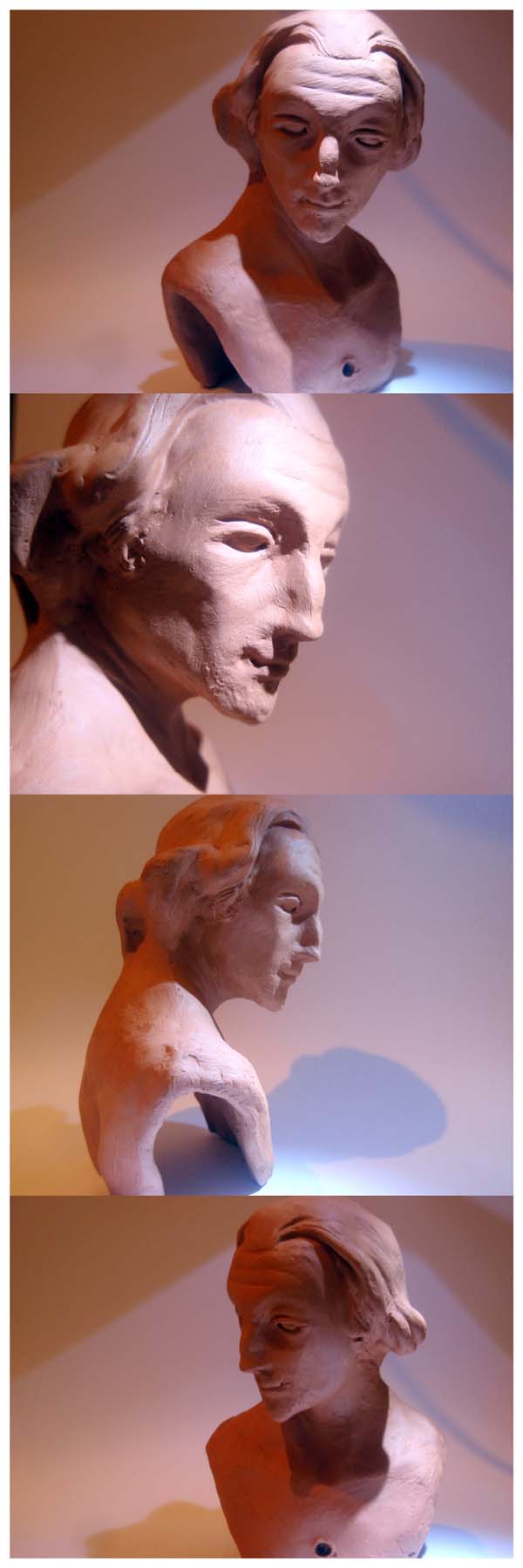 Cierto que esa luz resalta el hundimiento de las cuencas de los ojos. Lo que también lo acentúa es las narices rectas ( si le haces , en las próximas, un poco de puente entre las cejas, se disimula más puesto que la nariz baja de nivel y no queda tan alta).