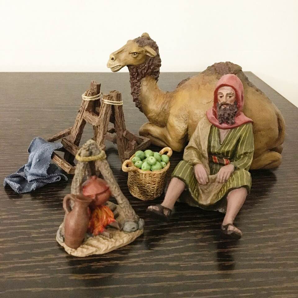 Y aquí mi primer carro, me parece uno de los complementos más bonitos, quiero hacer más pero este año ya no me cabrían en el Belén. Está hecho con madera de una caja de fresas, los palos a los laterales del burro son palillos de comida china. El burro está modificado a partir de uno de la marca Schleich, el campesino es el "pescador" de la colección de Ediciones el Prado, que al cortarle la piedra en la que iba sentado, encaja perfectamente sentado en el carro. Espero que os guste!