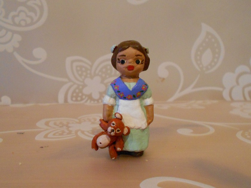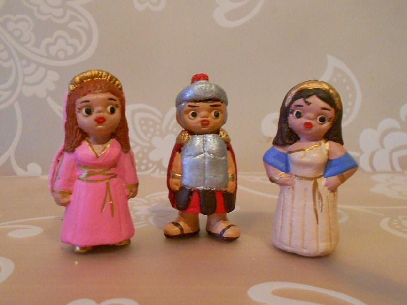 Os enseño las figuritas que acabo de terminar para el belén de mi amiga. Eran de su abuela, y algunas estaban un poco rotas. Me pidió que le hiciera romanos para su palacio de Herodes y esto es lo que me ha salido. Pongo la foto del antes porque ella la hizo antes de traérmelas, no porque yo se la hiciera, que nunca me acuerdo. A ver que os parecen. La pastorcilla del osito representa a su hija de 8 años, me hace mucha gracia que los niños de la familia estén representados en el belén