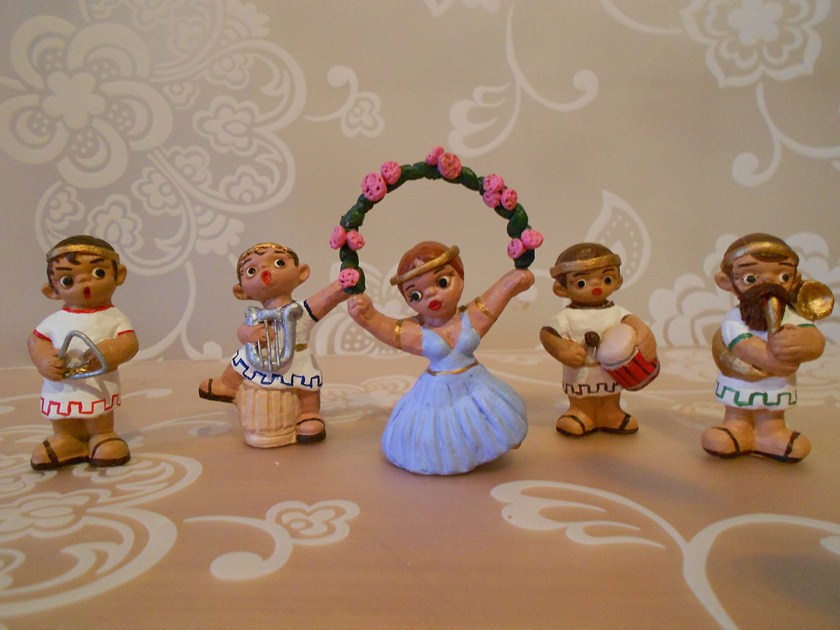 HOla Marilo, vaya manos que tienes, te han quedado geniales, tu amiga estará contenta, le has hecho a las figuras un lavado de cara soberbio, todas estan divinas, pero el conjunto de los músicos y la danzarina con el arco de flores es espectacular.