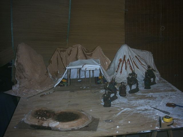 Juani.- Con todo mi respeto te voy a dar uno consejo con esas montañas.- Verás que se le notan mucho los pliegues de la arpillera, una vez que las has colocado, con la escayola que te sobra dale a los pliegues con la mano y procura taparlos. Una vez conseguido mas o menos, y para darle mas realce y tapar las señales de los dedos, rocia por encima de ellas con escayola seca, y si es yeso mejor aún, rocialas bien y luego con um pulverizador le echas agua para que fragüe el yeso y la escayola. Una vez conseguido esto, para pintarlas con facilidad y rapidez, rocia de la misma forma con polvos de colores, comenzanzo con el marron tierra y terminando con el verde, todo esto en diferentes tonaledades, y vuelta a rociar con el pulverizador. De esta forma lo harás mas rapido que pintando con el pincel y conseguiras una buena textura de monte, Echale tambien pegotes de yeso para que parezcan piedras.- Ya me contaras.- Un cordial saludo |