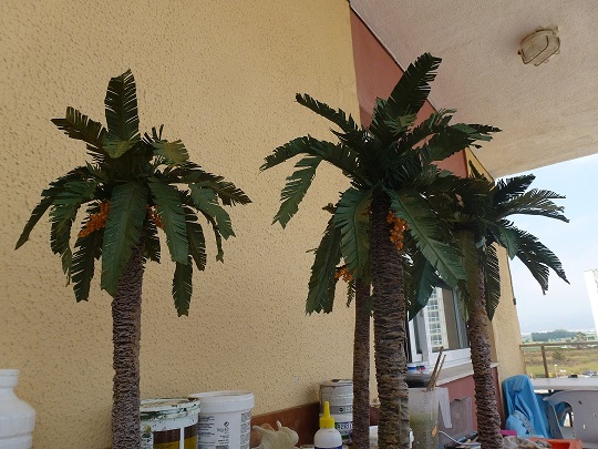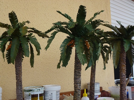 hola arturo que tal? bien en las hojas de tu palmeras se ve un color distino en si, ¿si has pintado encima o con spray que color utilizastes?