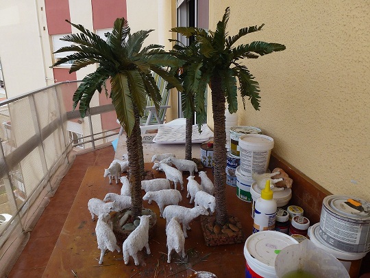 HOla Arturo, precioso rebaño de ovejas, y las palmeras estan estupendas. menudo belén precioso que vas a tener; a mí me pasa como a Silvia, no consigo hacer ovejas con molde, las estoy intentando hacer con barro de secado al aire porque no tengo horno y no quedan mal, pero voy muy despacio, vamos, que no acabo un rebaño decente hasta dentro de varios meses.