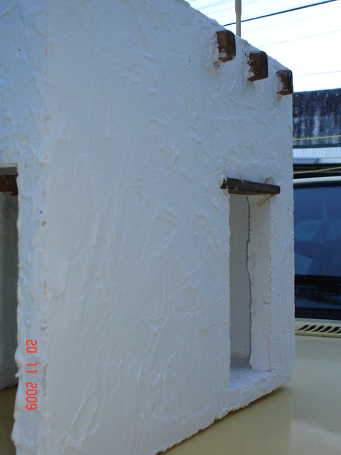 Ya "casi" tengo terminadas mis construcciones y no niego que me ha sido muy dificil hacerlas; en un principio no me atrevia y lo pensaba mucho al iniciar los cortes (con cuter o con el soldador), aunque luego de echar a perder algunos trozos de porex e ir ganando confiaza, todo me a sido un poco mas facil.