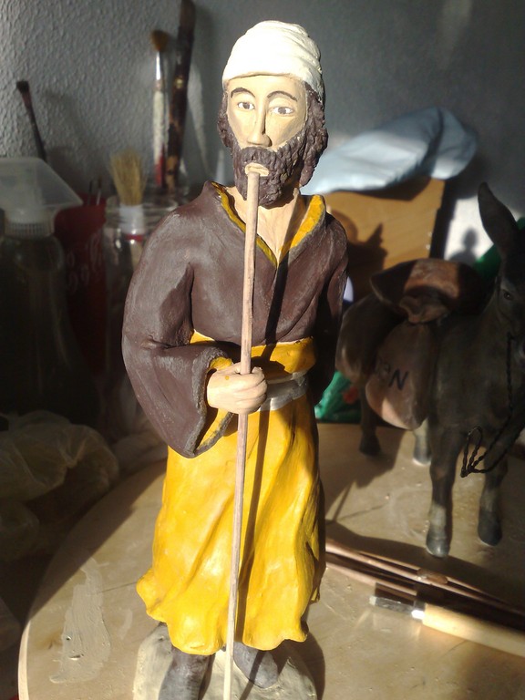 Hola a todos soy un aficinado a los belenes desde hace unos años pero siempre quiero mejorar tecnicas y este año estoy intentando mejorar en la realizacion de figuras asi que aqui esta la figura que he realizado de barro de 28 cm es un pastor para que tire de una burra le falta algunos retoques en la pintura pero quiero saber antes vuestras opiniones que para mi es muy importante, gracias de antemano por vuestra opinion.