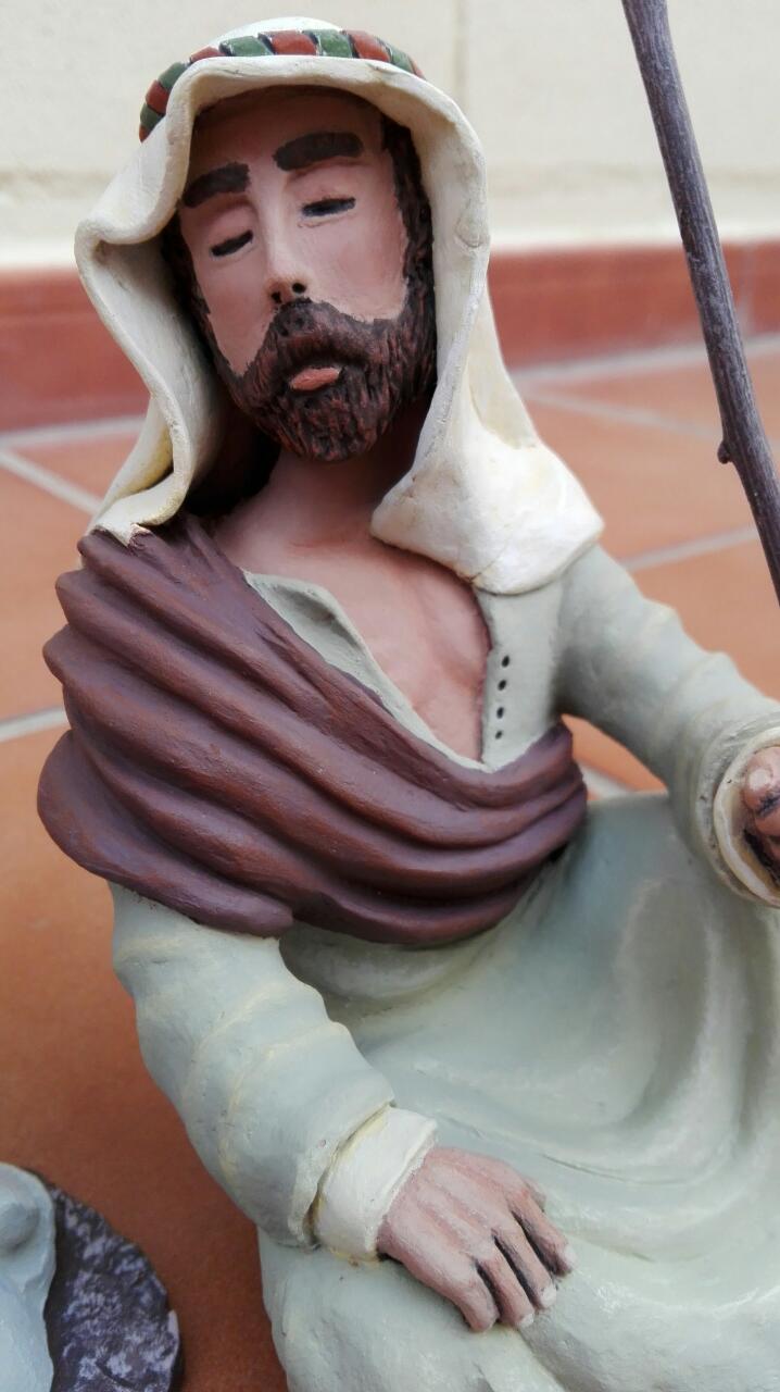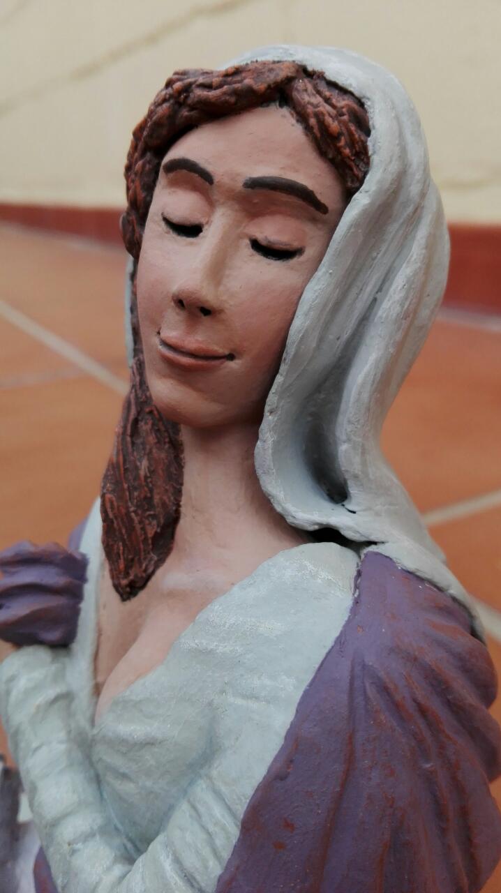 Este año me he embarcado en la realización de un misterio hecho con pasta Das Terracota. Ahí es nada. En vez de empezar con unas ovejitas o algún pastor, he tenido la osadía de comenzar directamente con un misterio. Zas, directamente a la piscina y sin salvavidas jaja. El misterio es de 25 cm aprox y policromadas al acrílico. Me gustaría saber vuestras críticas y opiniones para seguir aprendiendo y mejorando para futuras creaciones. Hay que tener en cuenta a la hora de valorar las que de modelado de figuras no tengo ni pajolera idea y es mi primera vez frente al barro.