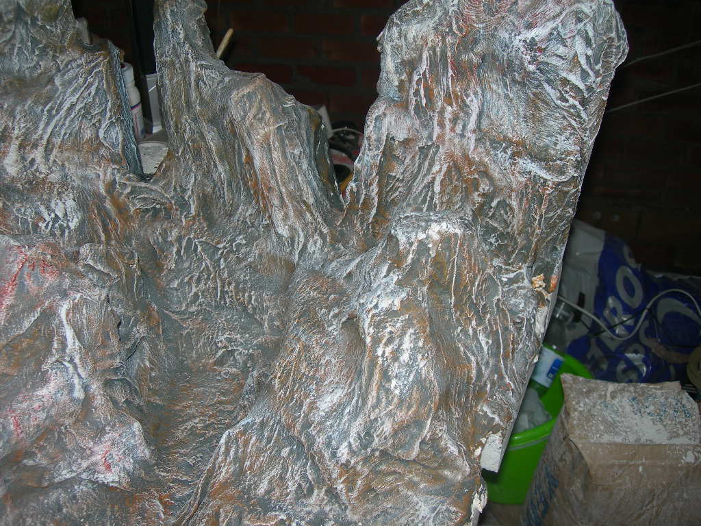 hola,si estan cubiertas de escayola.primerro las he pintado de gris luego con el pincel casi seco le he dado con ocre y luego la misma operacion con el blanco y des pues si quieres le puedes dar unos matices de verde o marrones.saludos
