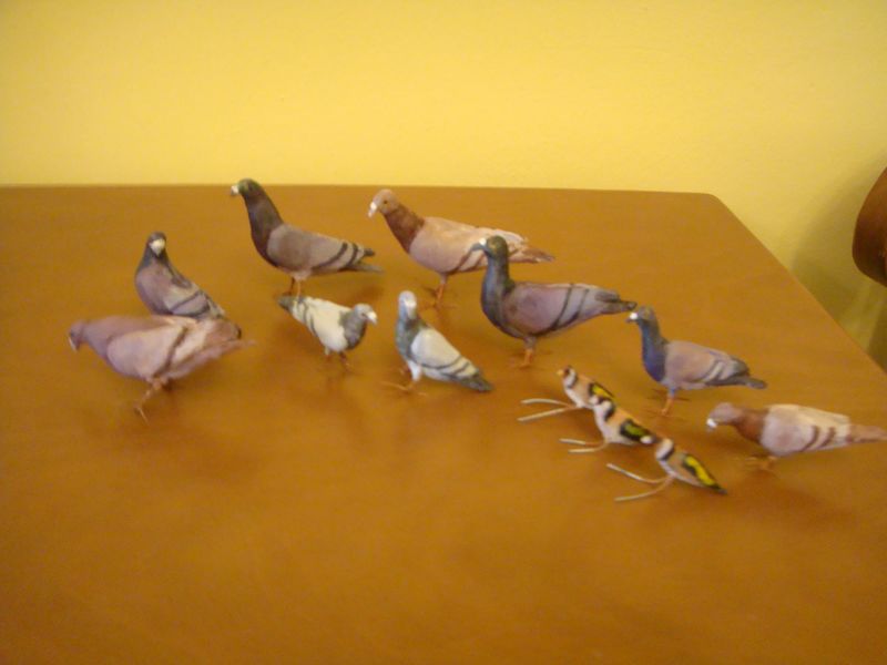 Felicidades amigo Antonio están hermosas tus palomas y jilgueros , si no es molestia me podías decir paso a paso como las hiciste y de que material les hiciste las patas ya que yo lo he intentado y por mas que trato no me quedan bien hechas, te agradezco de antemano tu ayuda