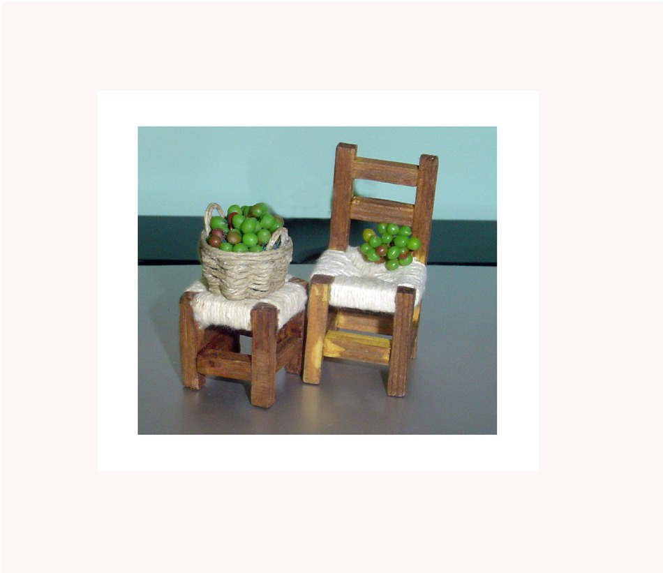 La cesta, taburete y silla tambien son mis primeras miniaturas, espero que gusten y pido opiniones .