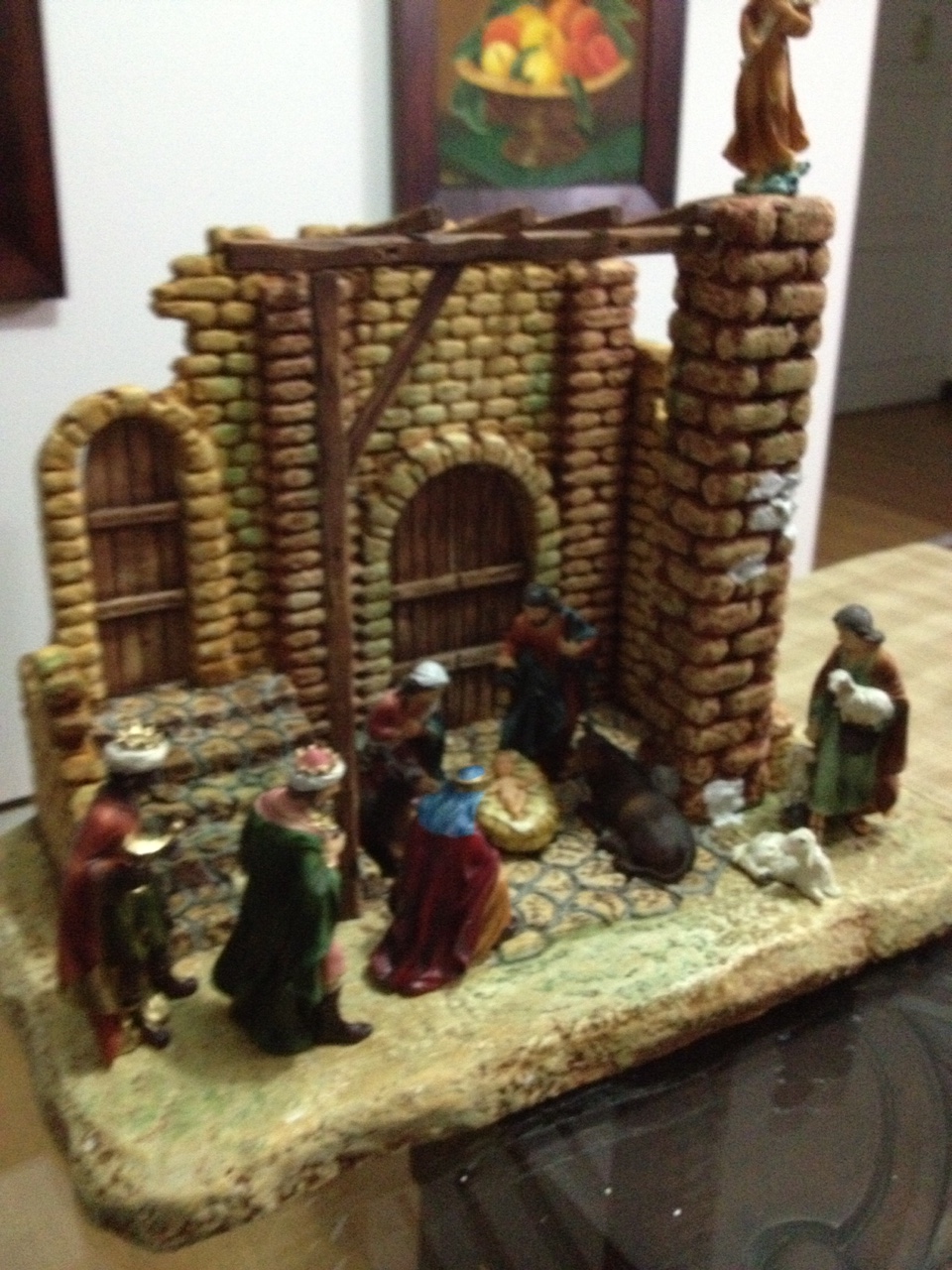 ...estupendo...no obstante, el Ángel lo veo demasiado alto, al igual que el techado de vigas de madera y por otra parte, las hojas de la enredadera, desproporcionadas en su tamaño. Pero bueno, para ser trabajos primeros no está nada, pero nada mal. Igual el año próximo corriges detalles y en definitiva, vas aprendiendo con la práctica. Como todo en la vida.