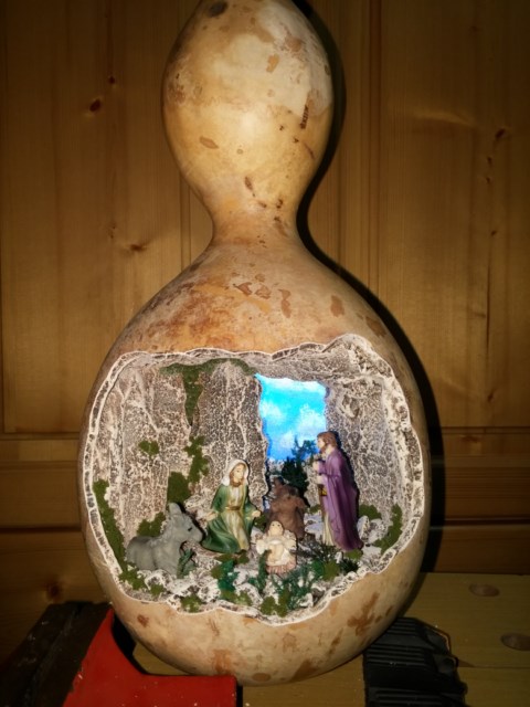 Juanchan: Gracias por tus elogios y si, hago durante todo el año pequeños trabajos, porque son más fáciles de vender que un belen enorme. Y sobre todo en cosas "atractivas" como son los faroles, cajas de madera, en calabazas secas, algo que la gente lo pueda guardar en una caja y lo vuelva a sacar al siguiente año.