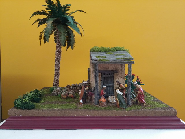 Hola Quicoline tengo que decirte que me encanta tu obra, tu trayectoria, pues he seguido en el foro la mayoría de tus trabajos y me gusta mucho tu estética y sobretodo que tu entusiasmo por el Belén lo depositas todo el año realizando obras pequeñas pero encantadoras, y además no precisas de figuras caras, pues lo importante es construir la escena. A las figuras que has utilizado en este alpendre les tengo especial cariño por ser las que utilice en mi primer diorama en el foro y vistas de cerca ganan bastante (te adjunto una foto de cerca). Las peanas que utilizas me encanta ...creo que dijiste que eran molduras de porex pintadas ..es así?. Enhorabuena por tu trabajo y tu estilo.