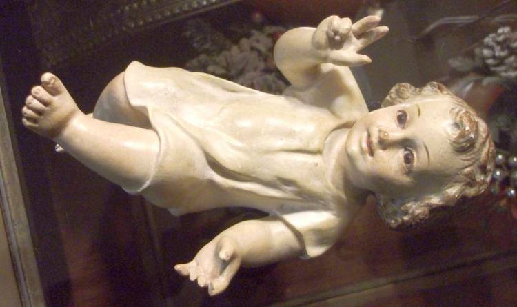 El niño Jesús es mucho más grande en proporción (creo que se adquirió así, que el original era igual pero más pequeño). Por cierto, en la Misa del Gallo de la Catedral de la Almudena de Madrid, el niño que dan a besar a los fieles me pareció igual (más grande claro)
