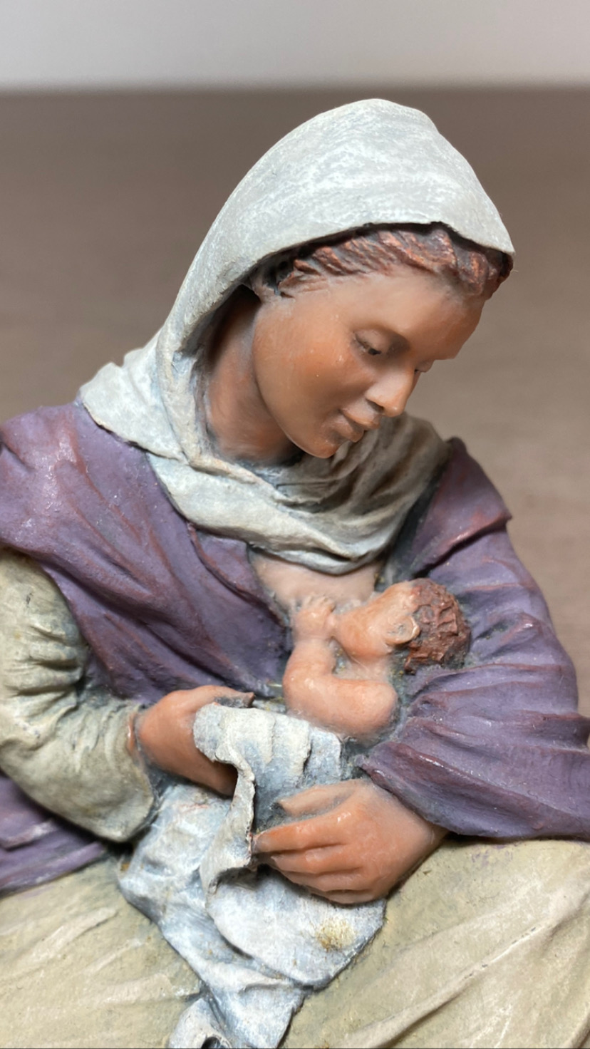 Se vende misterio: San José y Virgen María dándole el pecho al niño Jesús. Del Taller de Montserrat Ribes Daviu (Artesana Belenistas de Cataluña). Son de pasta cerámica de la serie hebrea de 17cm. No se han estrenado, están nuevas y en perfecto estado.