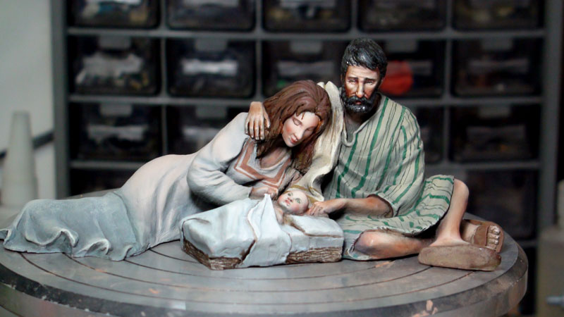 Hola Santi, !!que preciosidad!! ya era una joya antes pero ahora, no sé si por las luces o que le has dado unos toquecillos estan más bonitas si cabe, con más claroscuros; la virgen me encanta, tiene una expresión muy dulce y José también pero está más seriote, jajja; es un conjunto perfecto, con mucho encanto y una escena muy tierna, y la pintura extraordinaria.... Me encanta. Debe dar un gustazo tremendo hacer tus propias figuras, yo voy a clase de modelado y ese es mi fin, poder hacermelas todas dentro de varios años, jajjaa. Me admira como puedes hacer unas rayitas tan delgadas en el vestido de José ¿las haces con un pincel de un pelo?.