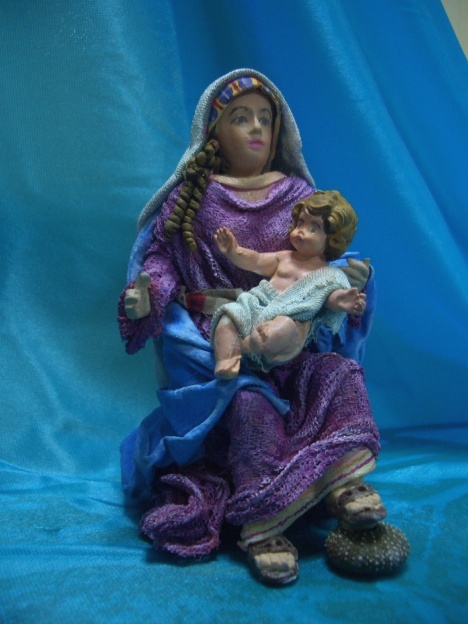 Silvia, muchas gracias,me alegro que te haya gustado. La estructura es de escayola, las caritas de porcelana excepto el niño que lo compré así, y le tengo que recitificar la carita, no me gusta el gesto que tiene. Las telas que les puse como verás son muy rústicas, sobre todo las de la Virgen pero las quería así, en plan pobre, jajaja, los colores son de óleo el S. José y la Virgen acrílicos potque tardaba mucho en secar y tenía prisa para ponerlo en el belén.