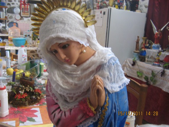 aahhh les comparto, la jaula que se ve tras san José, son los canarios de mi Juanito: Onassis y Callas, acaban de ser padres el 12 de diciembre, así que sus dos pequeños son "los lupitos" a ver si los alcanzais a ver.