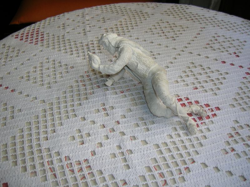 Me parece todo un reto esto de modelar una figura, yo por mi parte no lo he intentado ni con las palomas que todo el mundo dice que es muy fácil, pero voy tomando nota para cuando me decida, por lo que veo, que le has hecho primero? Una estructura con alambre y papel aluminio?