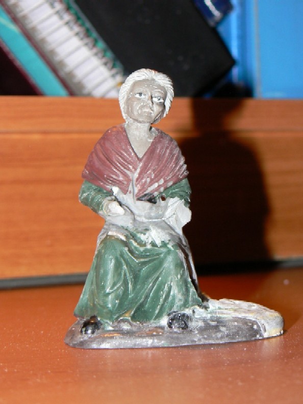 Hola, despues de ver la "masacre" de TITUS me he lanzado contra mis pobres figuritas de la tienda de los veinte duros. La primera victima ha sido una adorable ancianita que no se que estaba haciendo y que a mi lo que más me inspiraba era verla haciendo calceta.