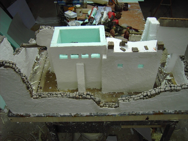 Hola Chonita, con el soldador no me gusta el efecto final, lo hago con bisturí y lija de manicura, jeje. Las piedras las tallo directamente en el porex, bueno, las voy haciendo en tiras de porex previamente ya cortadas con la forma de la pared que quiero simular, una vez terminadas las voy pegando cada una en su sitio.