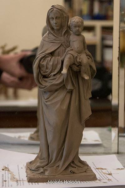 Proceso de modelado en barro de figura de 24 cm.