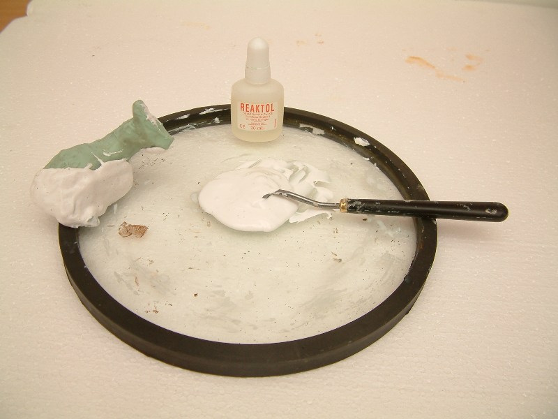 15 figura moldeada con las dos siliconas.jpg (60KB - 245 descargas)Quiero aclarar que tanto lo que dice lo que dice Caronik como lo que dice Titus es cierto. Me explicare: Existe dos tipos de siliconas dentales, la de condensación que es la que dice Titus que emplea y que se necesita de un catalizador para que fragüe (para entendernos) . Y hay otra que viene en cartuchos con dos compartimentos (la de adición), que al mezclarte en una cánula que hay para tal fin comienza reacción química antes de comenzar a fraguar. Esta ultima, necesita de una pistola especial así como de unas cánulas que no sirven más que para una vez, por lo que este sistema resulta mas caro.