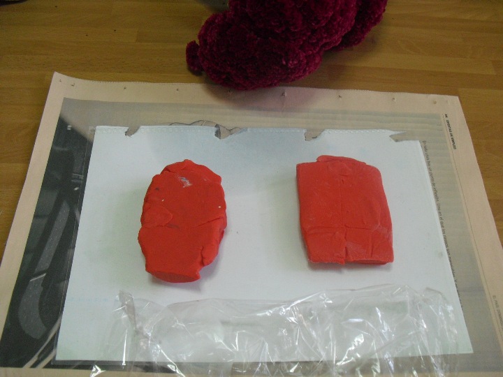 La plastilina la cubro con plástico de cocina muy fino bien estirado y paso a copiar la figura.