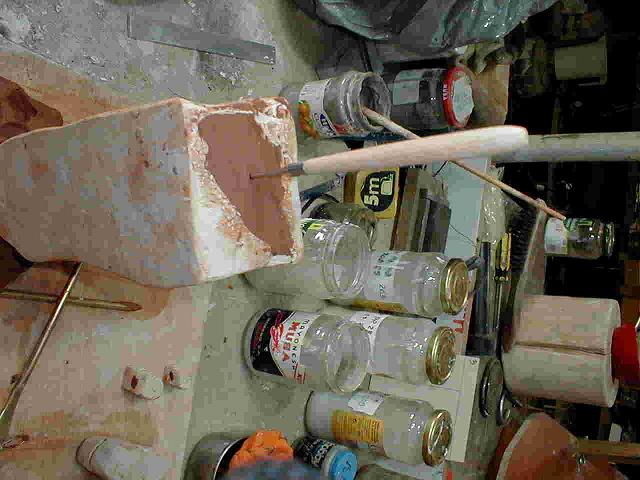 14.-Para colocarle el brazo se raspan ambas partes, se le da barbotina y se pegan haciendo presión y