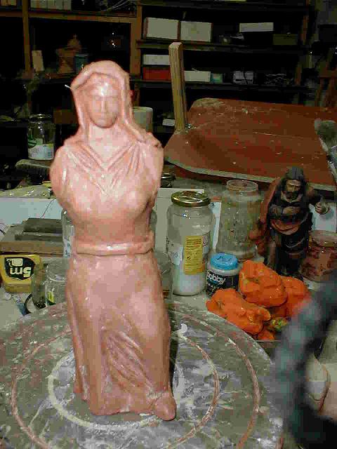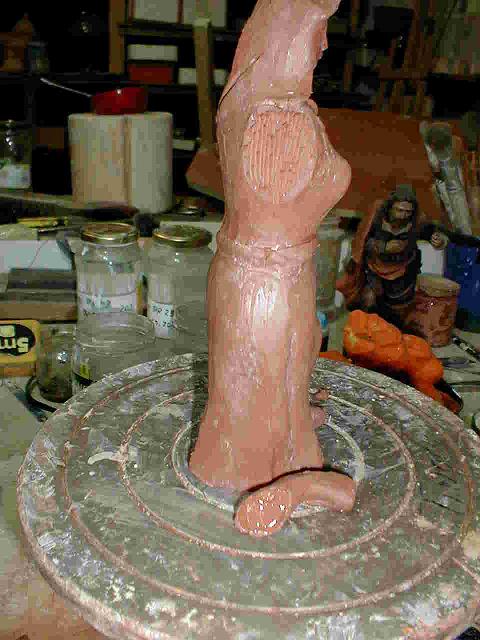 Un último consejo que se me ha pasado; para sacar detalles a las figuras es mejor con el barro mas bien duro, en estado de dureza de cuero, así se sacan mejor los detalles que con el baro tierno. Una vez terminada la figura se le dan todas las formas y lo detalles que se puedan, se deja de la mañana a la tarde o algo mas y se le sacan los detalles.