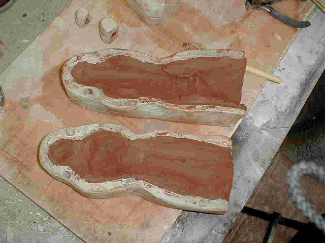 11.-Se presiona el barro sobre el molde, mitad a cada uno. Luego se le da barbotina a cada parte de los