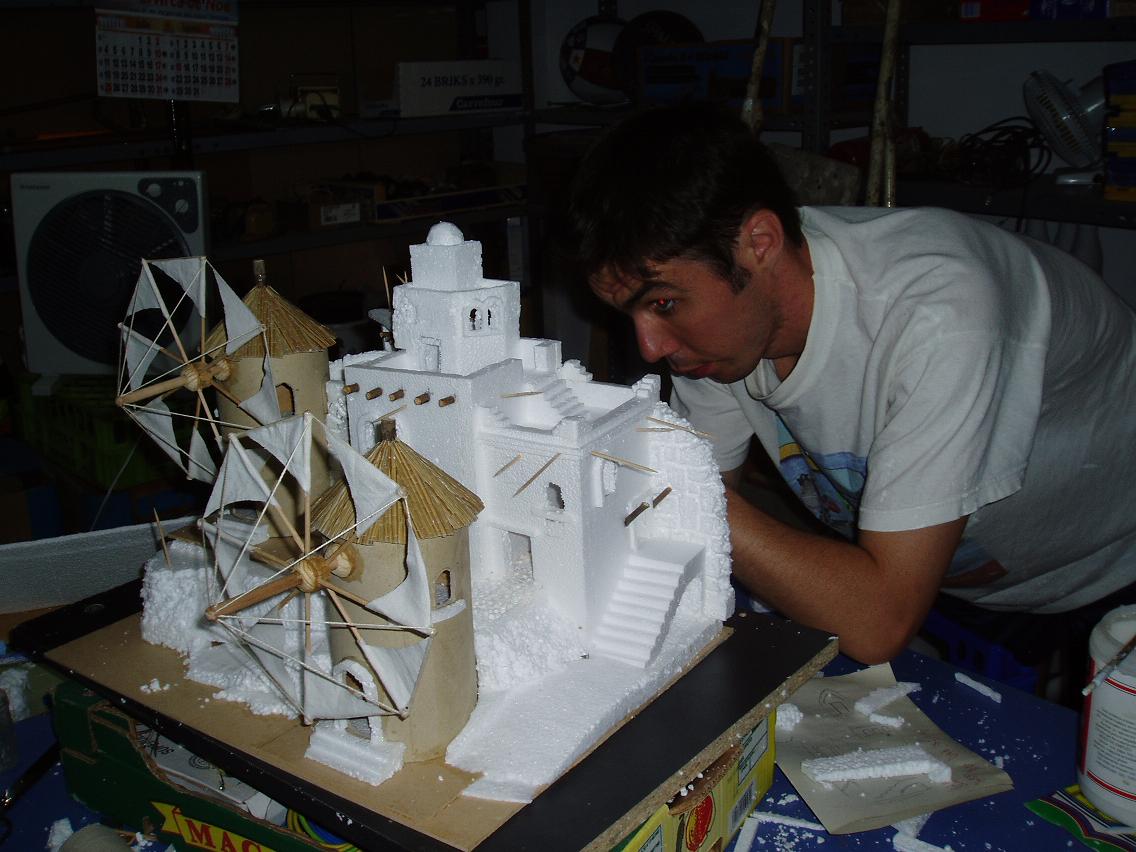 Hola Josy no dispongo de tales planos. Ya sabes, perpectivas, vistas y medidas. Simplemente un dibujo el cual no se parece mucho al trabajo final. Si te resulta algo complicado puedes hace solo un molino adosandole una casa. En la primera foto puedes ver con detalle como lo construi de corcho y los molinos a partir de un tubo de cartón. Luego aplicar la escayola y la pintura. ¡Ah! está construido en función del tamaño de las figuras que se colocan en puertas y en el exterior. Tu debes hacerlo según tus figuras.